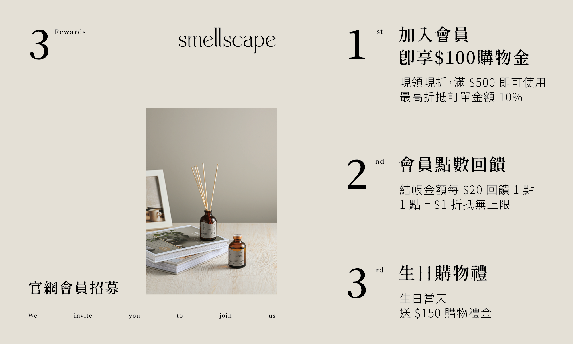 ※smellscape保留隨時變更、修改或終止本辦法之權利。若有異動,修改將公布在網站上。若會員於辦法變更、修改或終止後繼續使用本服務,皆視為會員已閱讀、了解並同意接受所有變更、修改及終止後之內容。
