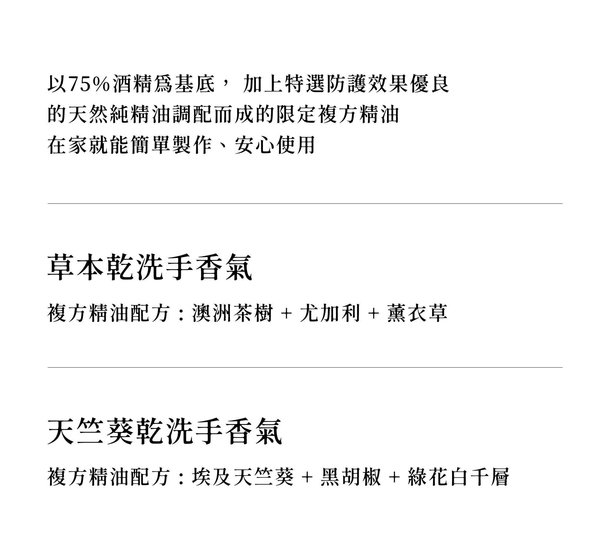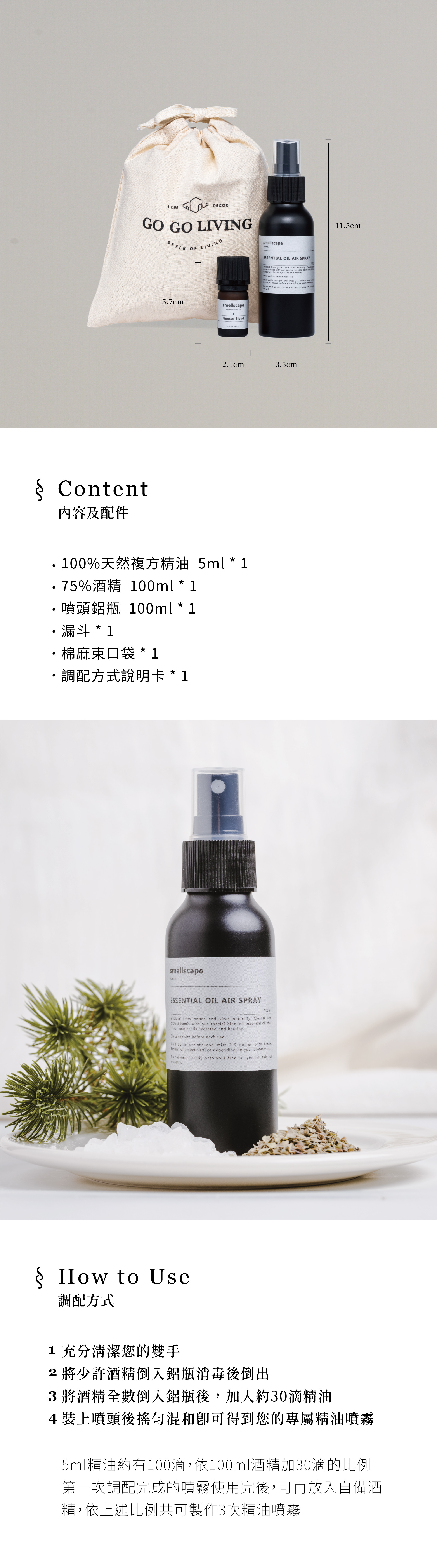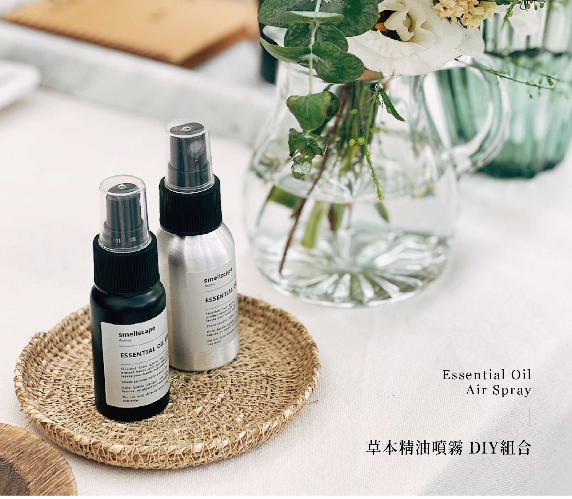 smellscape草本精油噴霧以酒精為基底, 加上特選防護效果優良的天然純精油調配而成的限定複方精油, 在家就能簡單製作、安心使用!