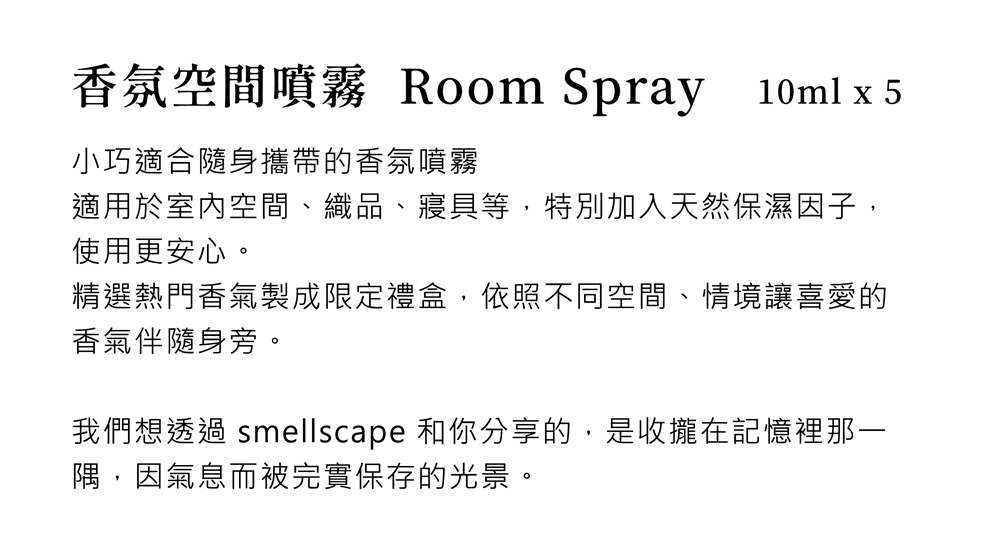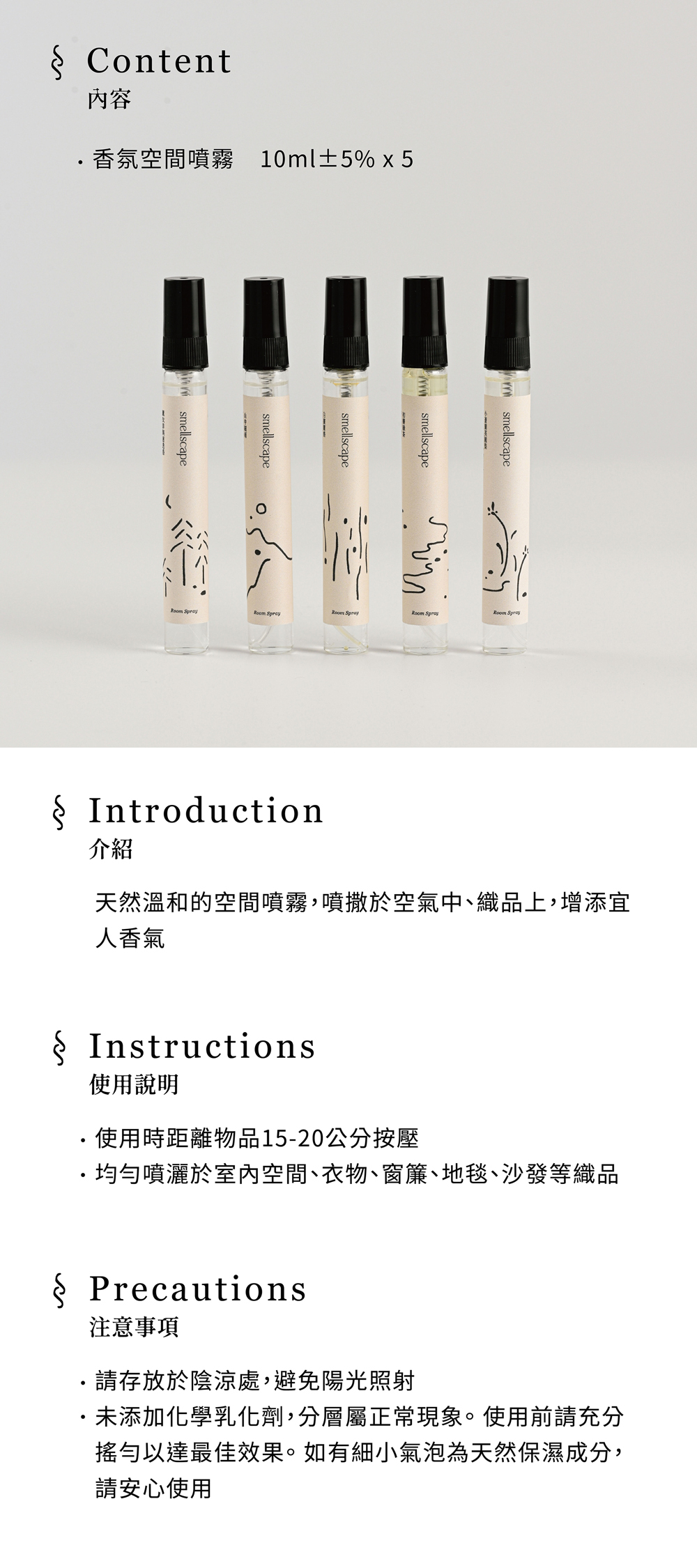精選受歡迎的香氣製成香氛噴霧禮盒,適合當小香水淡香水使用,也可以噴灑在空間、織品,依照不同空間、情境讓喜愛的香氣伴隨身旁。