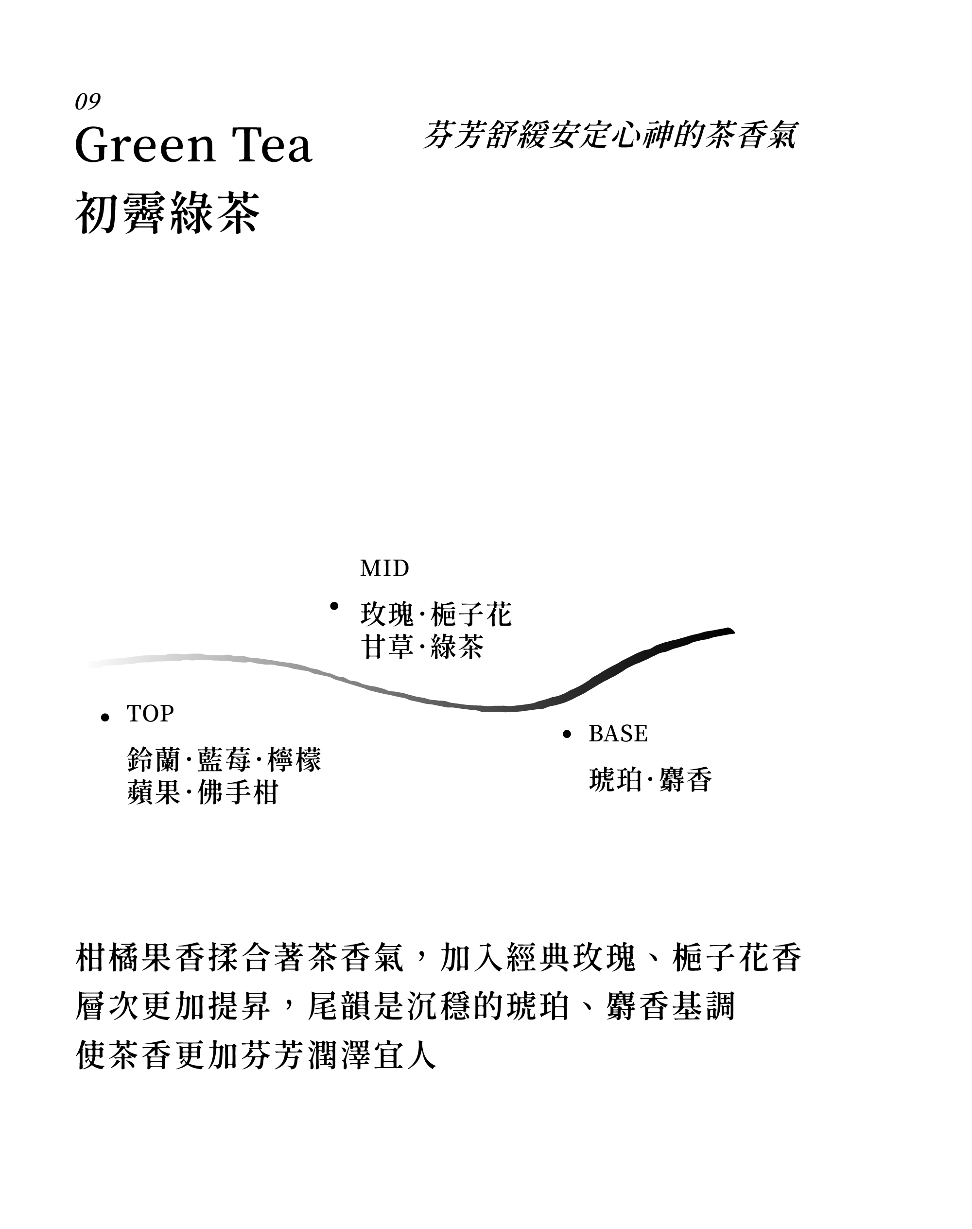 柑橘果香揉合著茶香氣,加入經典玫瑰、梔子花香層次更加提昇,尾韻是沉穩的琥珀、麝香基調,使茶香更加芬芳潤澤宜人。