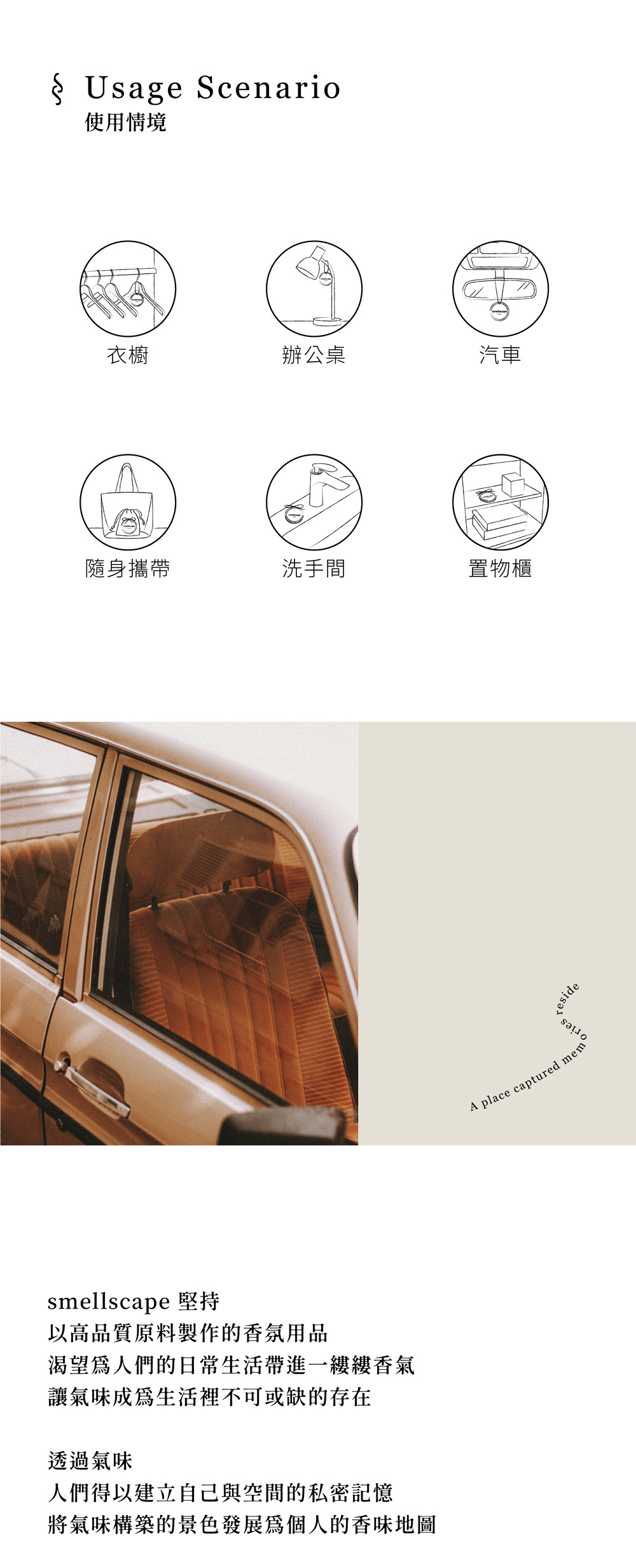 小巧的素白擴香石滴上宜人香氣,可掛於車上、辦公桌、衣櫃,放在包包裡等,隨時都有喜歡的香氣陪伴。