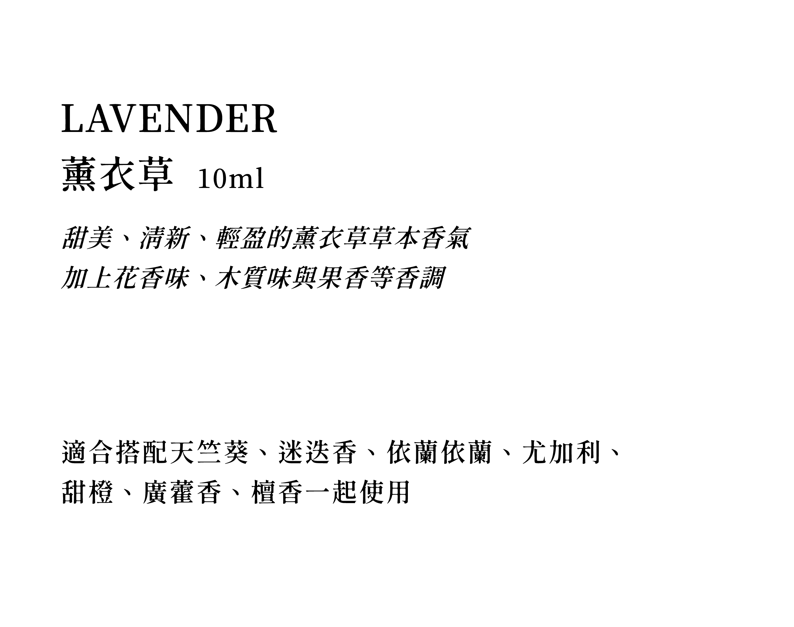 甜美、清新、輕盈的薰衣草草本香氣,加上花香味、木質味與果香等香調。